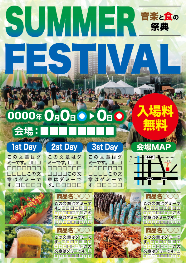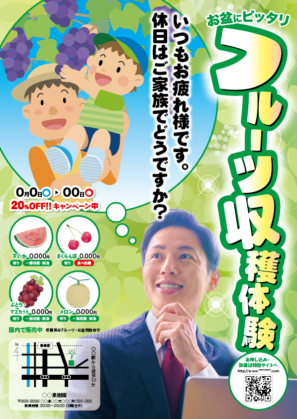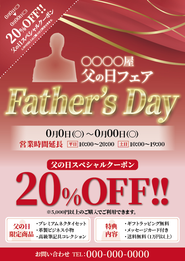 ✓ 季節・イベント限定チラシ Father's Day、夏休み、年末年始など、時期に合わせた特別感のあるキャンペーンチラシ