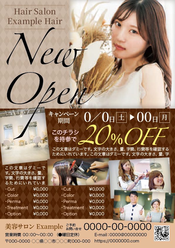 ✓ 新規顧客獲得チラシ 初回限定特典やお試しキャンペーンなど、新規客の関心を引く仕掛けを盛り込んだデザイン